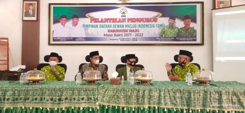 LINTASCELEBES.COM WAJO — Bupati Wajo H. Amran Mahmud menghadiri acara pelantikan Pimpinan Daerah Dewan Masjid Indonesia (DMI) Kabupaten Wajo masa bakti 2017 – 2022 Sabtu 28 November 2020 di Aula Pertemuan Kantor Kementerian Agama Kab. Wajo.