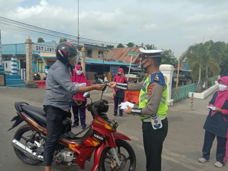 Cegah Penyebaran Covid 19, Satlantas Bersama Dinkes Wajo Bagi Masker