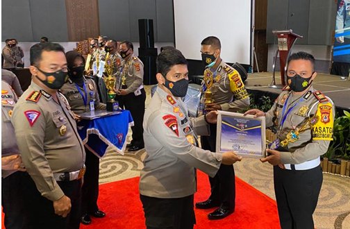 LINTASCELEBES.COM MAKASSAR — Satuan Lalu Lintas (Satlantas) Polres Wajo menerima penghargaan dalam kegiatan Rapat Kerja dan Tekhnis (Rakernis) bidang Regident Ditlantas Polda Sulsel tahun 2020.