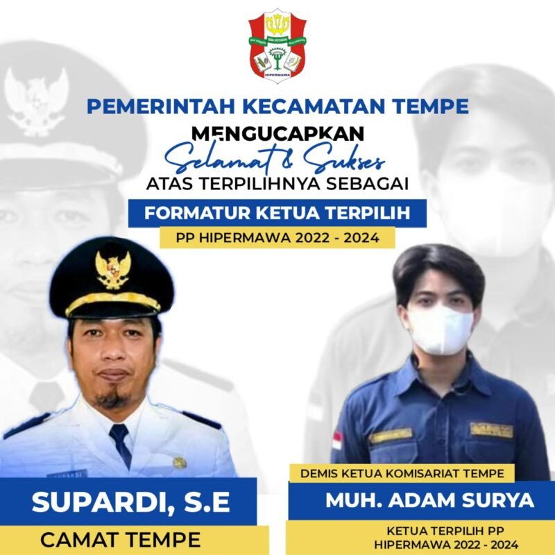 Atas terpilihnya Mantan Ketua Hipermawa Cabang Tempe sebagai Ketua Formatur Pengurus Pusat Hipermawa periode 2022-2024, direspon sejumlah kalangan di kabupaten Wajo, salah satunya Camat Tempe.