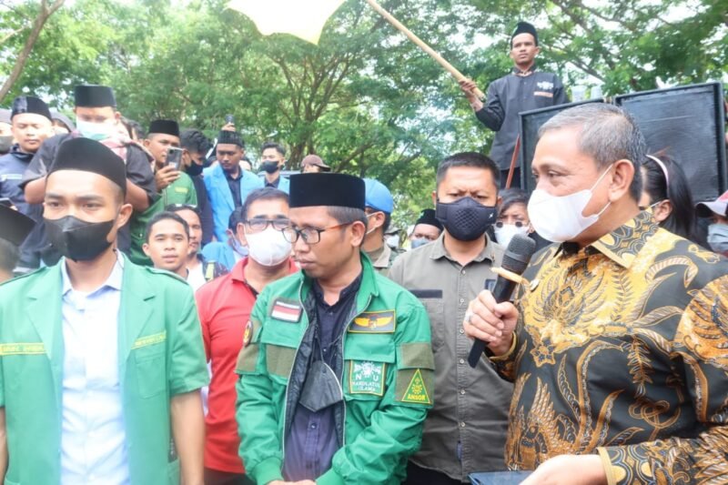 LINTASCELEBES.COM WAJO — Sikap yang patut di jempol ditunjukkan Bupati Wajo, Amran Mahmud. Saat kantornya “digeruduk” ratusan peserta aksi dari berbagai organisasi dan santri As’adiyah yang menolak rencana kedatangan Ustadz Firanda Andirja, Amran memilih menemui langsung tanpa pengawalan ketat, Jumat (25/3/22).