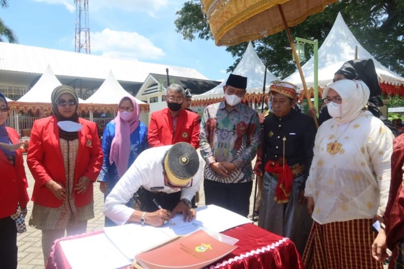 LINTASCELEBES.COM WAJO — Bupati Wajo, Amran Mahmud menghadiri kegiatan pelantikan dan Pengukuhan Pengurus Lembaga Adat Desa Tosora “Wanua Tosora” yang digelar di pelataran Mesjid Tua Tosora, Sabtu (26/03/2022)