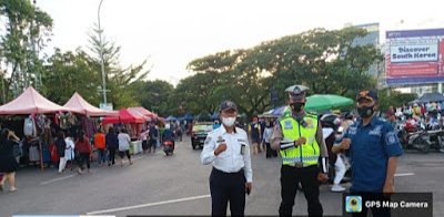 LINTASCELEBES.COM MAKASSAR — Dinas Perhubungan (Dishub) Kota Makassar, bersama pihak kepolisian melakukan pengaturan arus lalu lintas di Kawasan Bundaran Centre Point of Indonesia (CPI), Jalan Metro Tanjung Bunga, Minggu (22/05/2022).