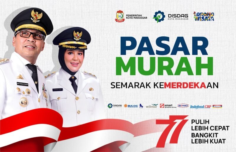 LINTASCELEBES.COM MAKASSSR —Semarakkan Hari Kemerdekaan Republik Indonesia yang ke-77 Dinas Perdagangan (Disdag) Kota Makassar menggelar Pasar Murah di Anjungan Pantai Losari, Rabu 17 Agustus 2022.