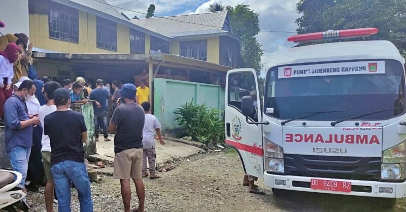 Jasad korban dibawa ke Desa Labukkang Kecamatan Dua pitue Kabupaten Sidrap menggunakan mobil ambulan milik Pemda Sidrap untuk disemayamkan.(S.Menroja)