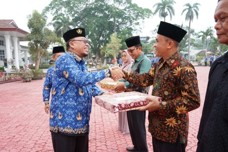 Sebelum memulai pidatonya Sekda menyerahkan Penali Kasih kepada PNS yang pensiun. Selanjutnya Sekda mengatakan hari ini adalah pelaksanaaan Apel gabungan yang terakhir di bulan puasa. Sekda juga menyampaikan cuti bersama akan di mulai tanggal 19 April hingga 25 April 2024.