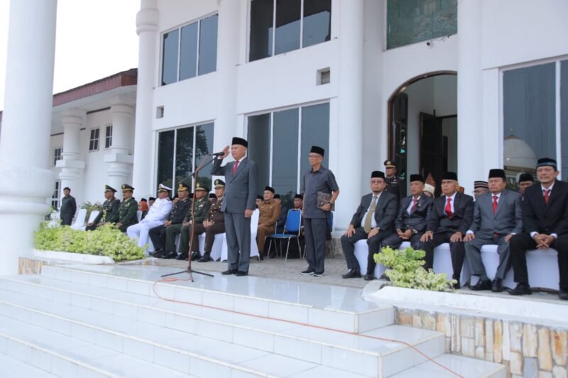 LINTASCELEBES.COM ASAHAN — Suasana khidmat mewarnai upacara peringatan Hari Kesaktian Pancasila yang digelar di Halaman Kantor Bupati Asahan, Minggu (01/10/2023) pagi. Upacara tersebut diikuti ratusan peserta dari pelajar, ASN, TNI, dan Polri.