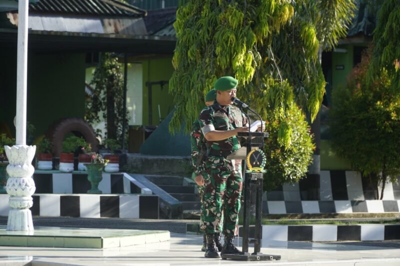 Pangdam juga mengingatkan pentingnya profesionalisme, disiplin, dan loyalitas dalam menjalankan tugas, serta memperkuat kemanunggalan TNI dengan rakyat sebagai sumber kekuatan sejati. Ia menegaskan bahwa kekuatan TNI tidak hanya terletak pada alutsista modern, melainkan pada soliditas dan sinergi antar matra. “TNI harus bekerja dalam satu kesatuan visi dan misi, tanpa ego sektoral. Kekompakan TNI adalah jaminan stabilitas nasional,” tegasnya dalam amanat yang dibacakan Dandim.