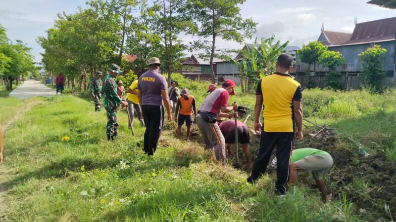 LINTASCELEBES.COM WAJO — Koramil 1406-02/Tanasitolo dipimpin oleh Letda Inf Irman Ahmad melaksanakan kegiatan Karya Bhakti pembersihan talut bersama masyarakat di Kecamatan Tanasitolo, Kabupaten Wajo, Selasa (7/4/2026).