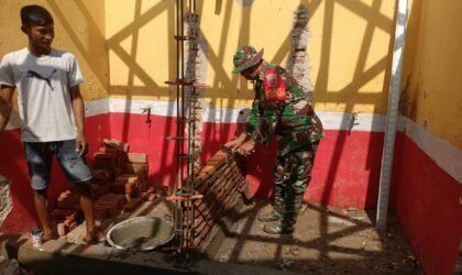 LINTASCELEBES.COM WAJO — Babinsa Koramil 1406-08/Sabbangparu, Kopda Asrianto, turut membantu kegiatan pembangunan WC di UPTD SDN…